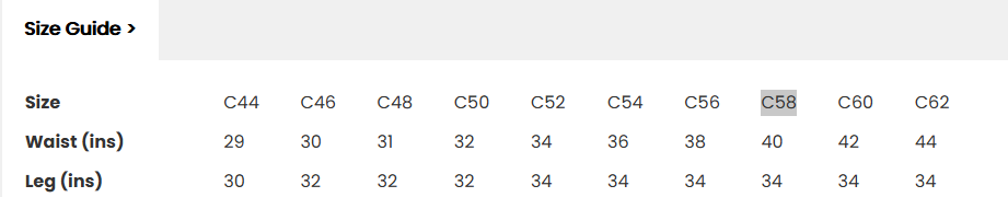 • C42-64 can be extended with 5 cm turn-up at ankle hem