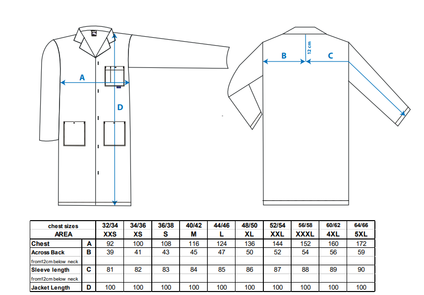 Features of this popular style include, a concealed stud front, two lower patch pockets and one chest pocket. Made from 100% cotton, this superb garment is durable and comfortable, meeting all your working requirements.