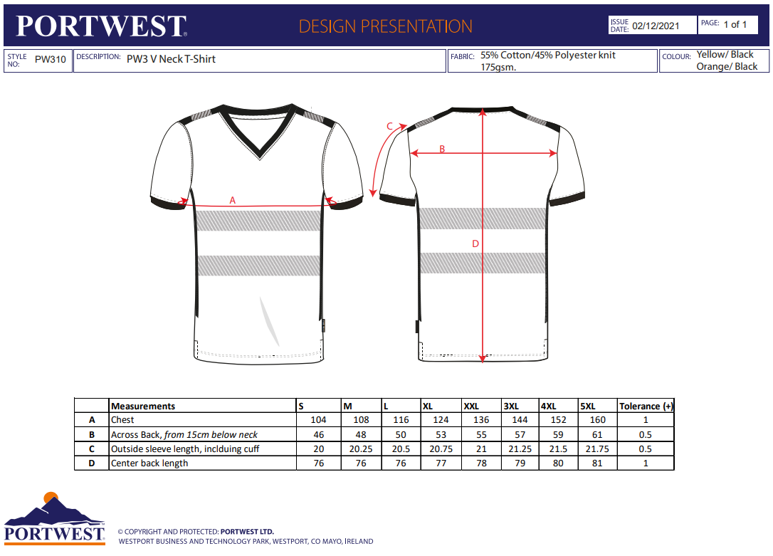 Datasheet - https://documents.portwest.com/datasheet.php?style=PW310&lang=GB&itemcol=PW310YBR&facility=902