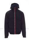 Men’s padded jacket, contrasting 8 mm zip, shaped hood with two seams and drawstring, elasticated waist, elasticated cuffs and rubberised adjustable wrist fastening, two outer pockets with concealed zip. Padded, micro-fleece lining on the collar and back, one inner zip pocket for smartphone with opening for headphones, zip on the back and chest for easier printing and embroidery.