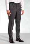 55% Polyester 45% Wool. Superbly tailored in a wool blend twill, brace buttons, belt loops, half lined.